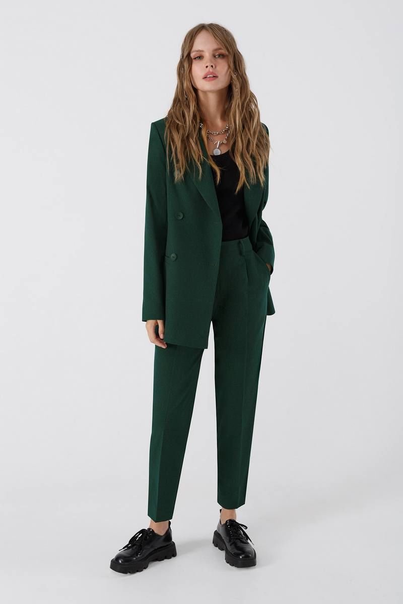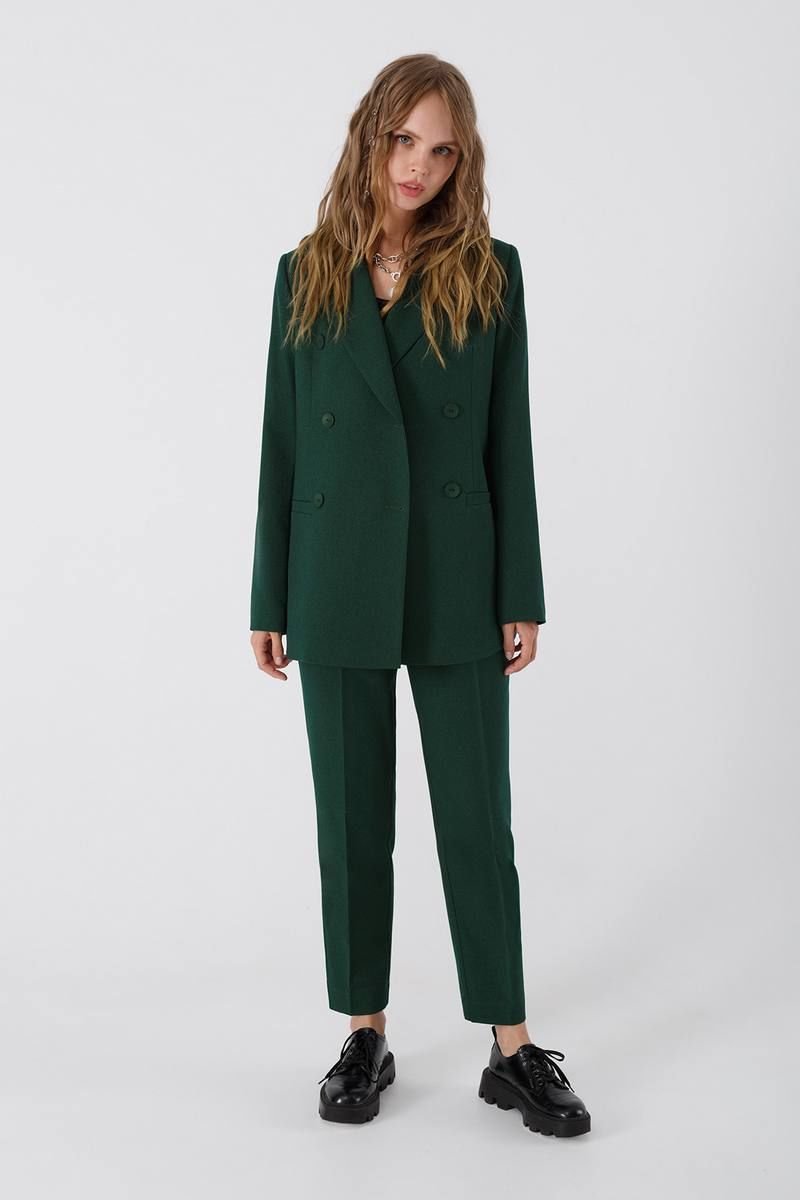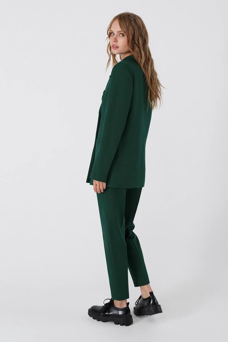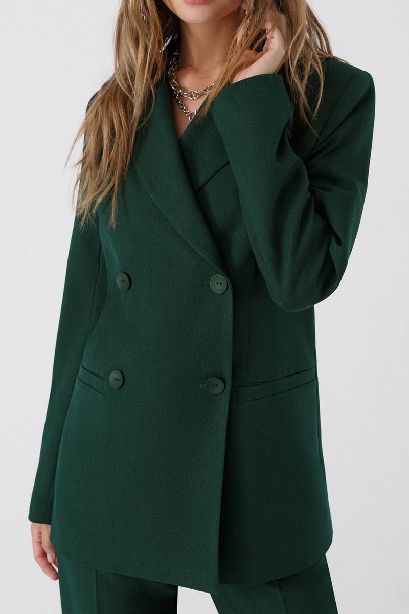 Текстильный классический жакет прямого кроя. Детали: жакет полуприлегающего силуэта, пиджачный воротник, перед с прорезными карманами, двубортная застежка на петли и пуговицы, спинка со средним швом, рукава втачные двухшовные, жакет на подкладке Длина по спинке около 66 см в размерах 40-46 и около 69 см в размерах 48-52, длина рукавов около 61 см