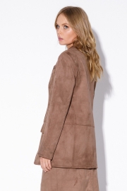 Свободный жакет из ткани под замшу. Детали: прямой силуэт, пиджачный воротник, функциональные карманы, застежка на петли и пуговицы, рукава втачные двухшовные, жакет на подкладке. Длина по спинке около 70 см в размерах 40-46 и около 72 см в размерах 48-52, длина рукава около 62 см