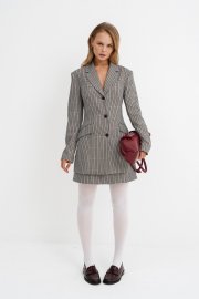 Удлиненный приталенный жакет из текстильной ткани с рисунком «гусиная лапка».
