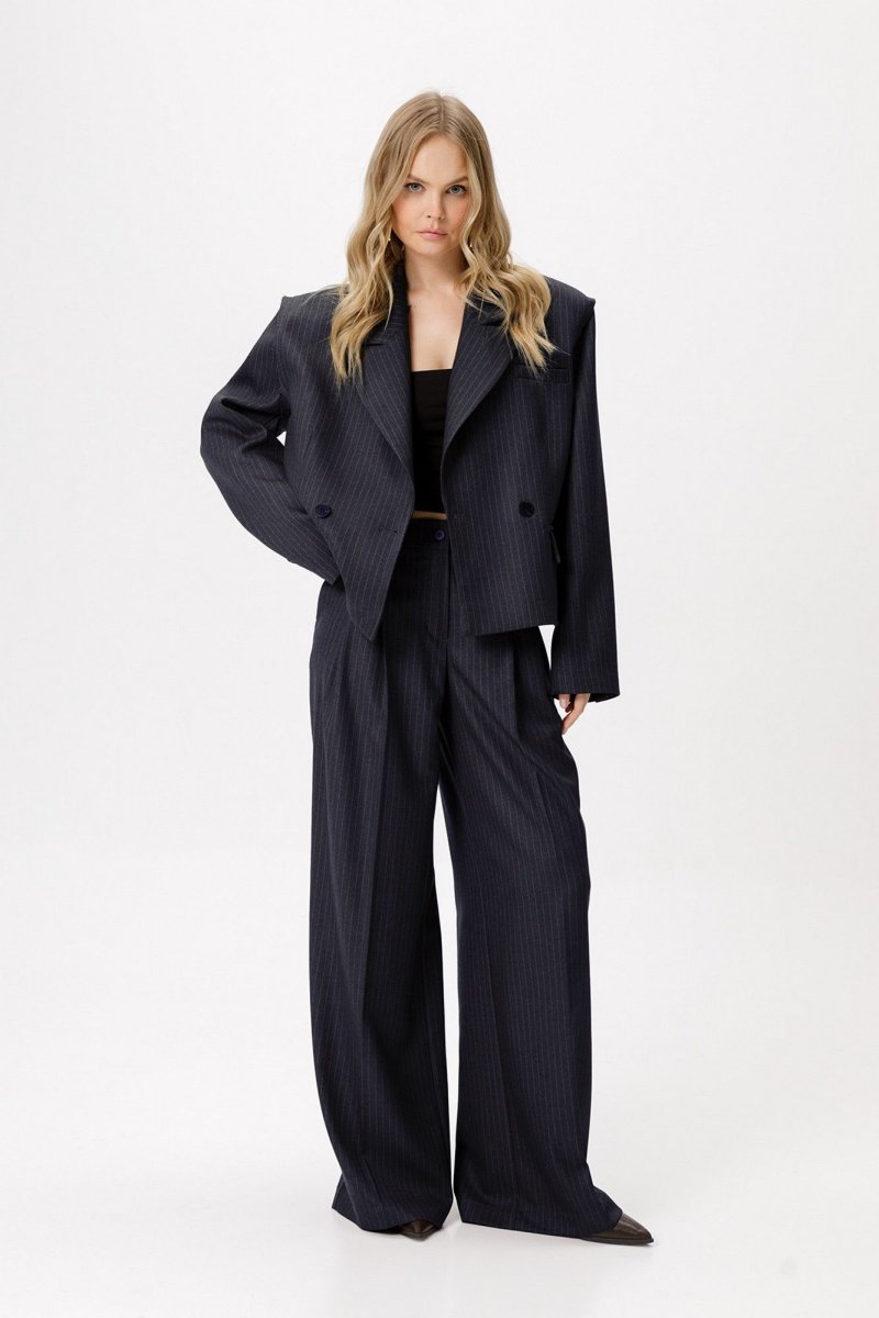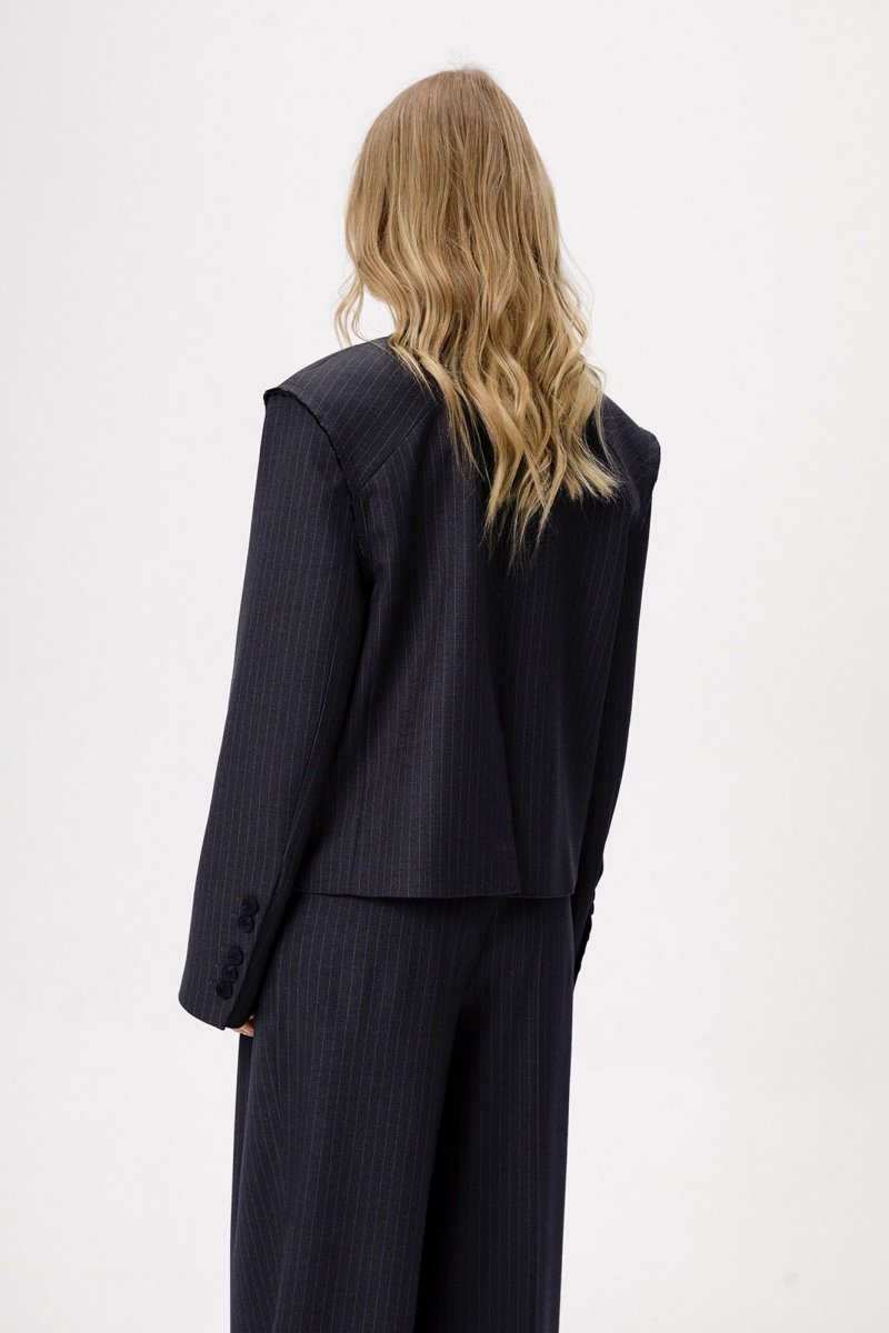 Укороченный оверсайз жакет в полоску с необработанными проймами.