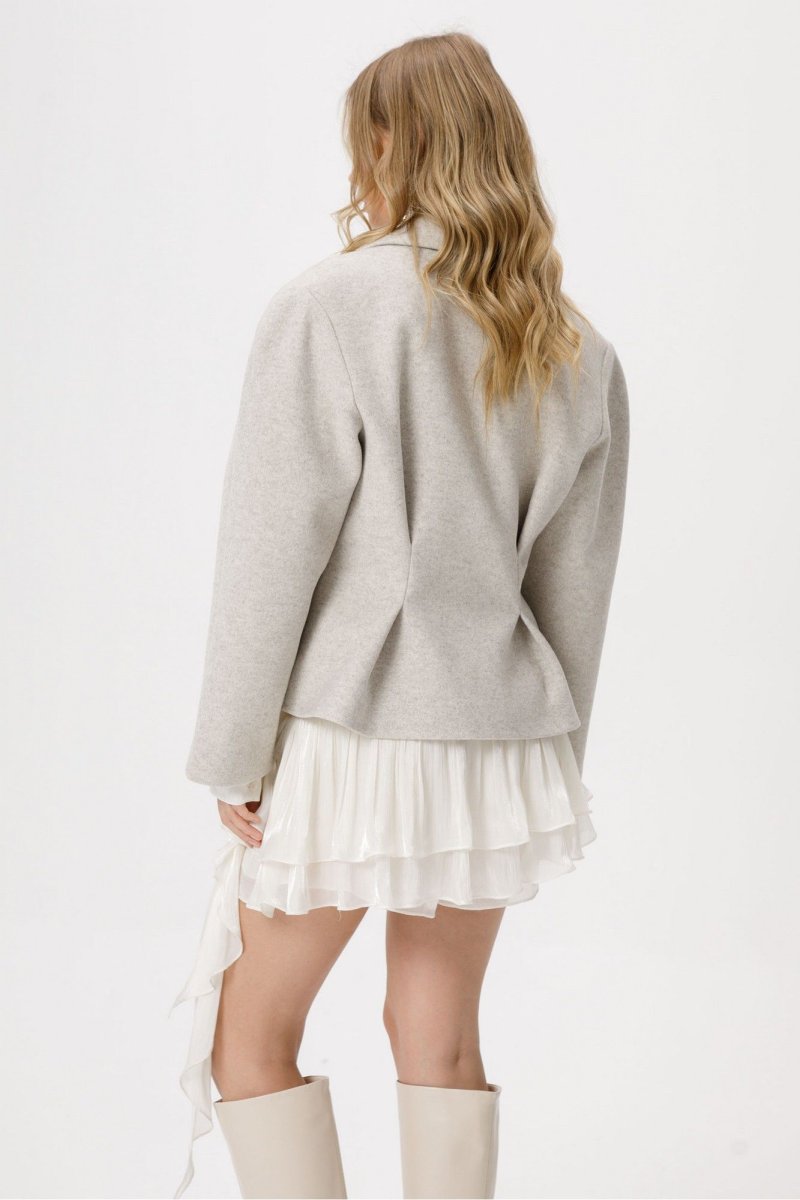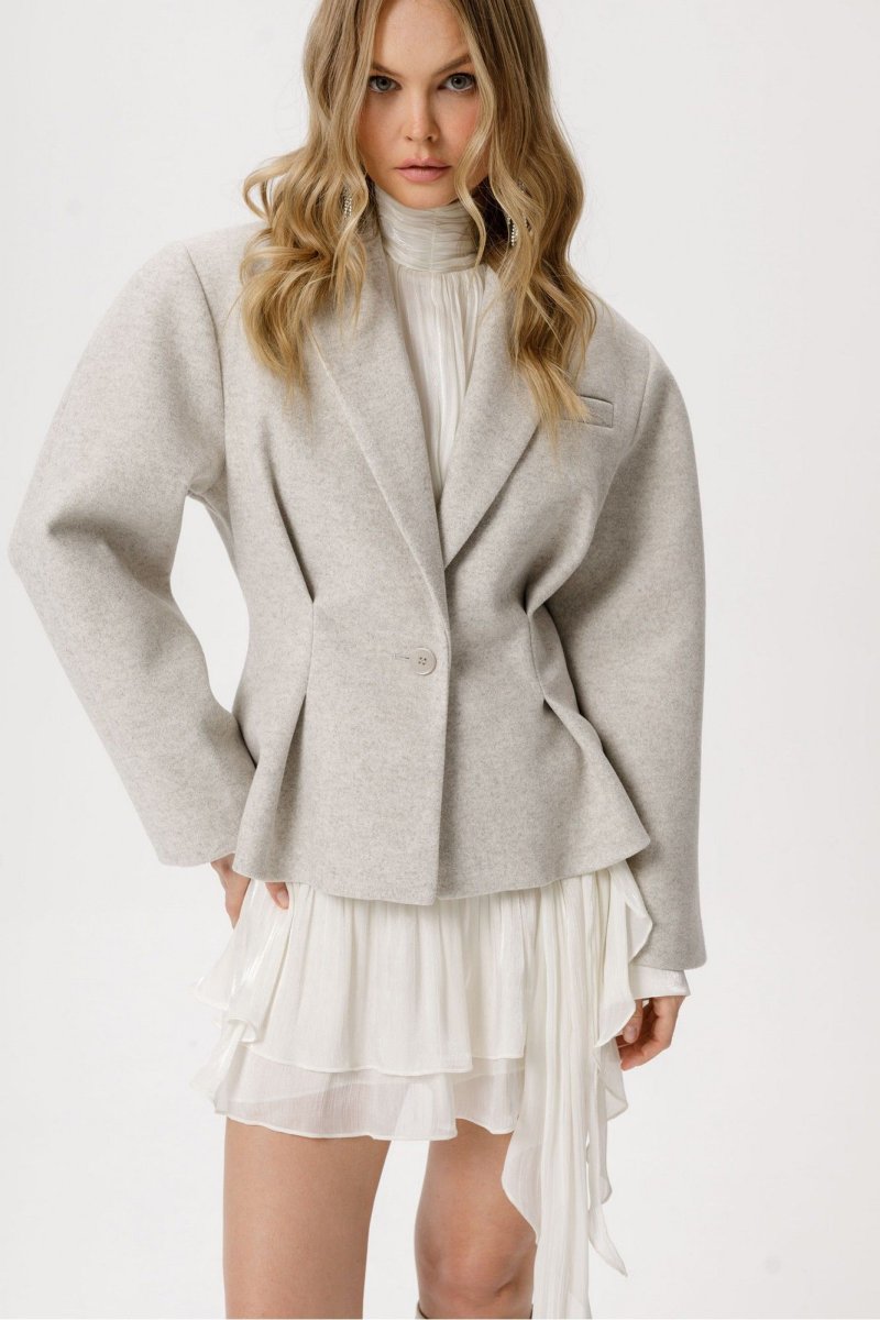 Приталенный жакет о-образного силуэта из утепленной ткани.