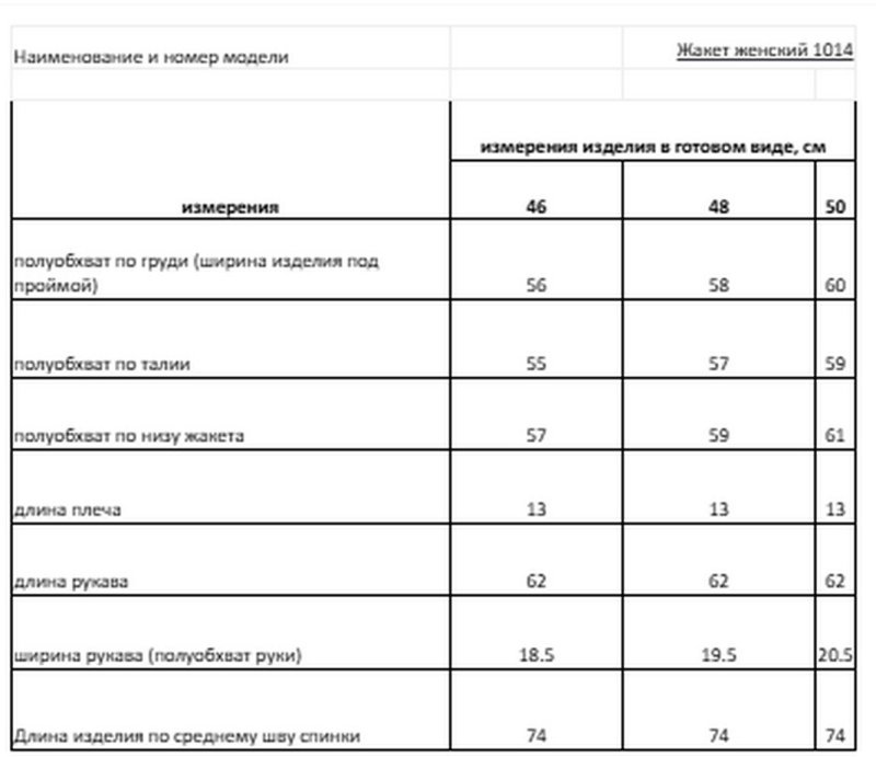Таблица размеров