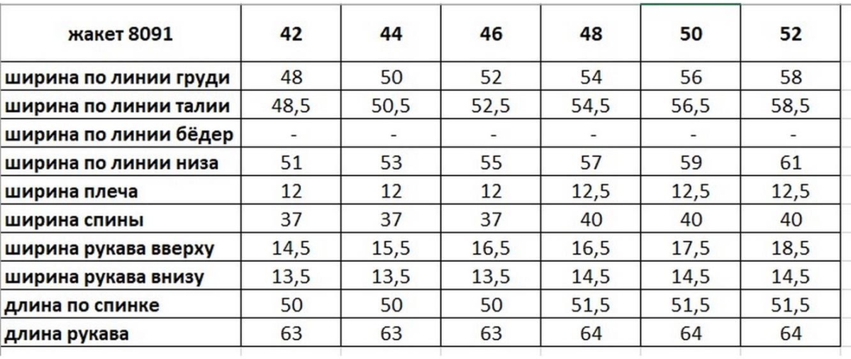 Размер Обхват груди (см) Грудь Обхват талии (см) Талия Обхват бедер (см) Бедра