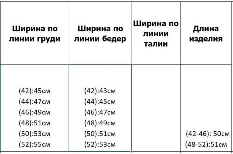 Размер Обхват груди (см) Грудь Обхват талии (см) Талия Обхват бедер (см) Бедра